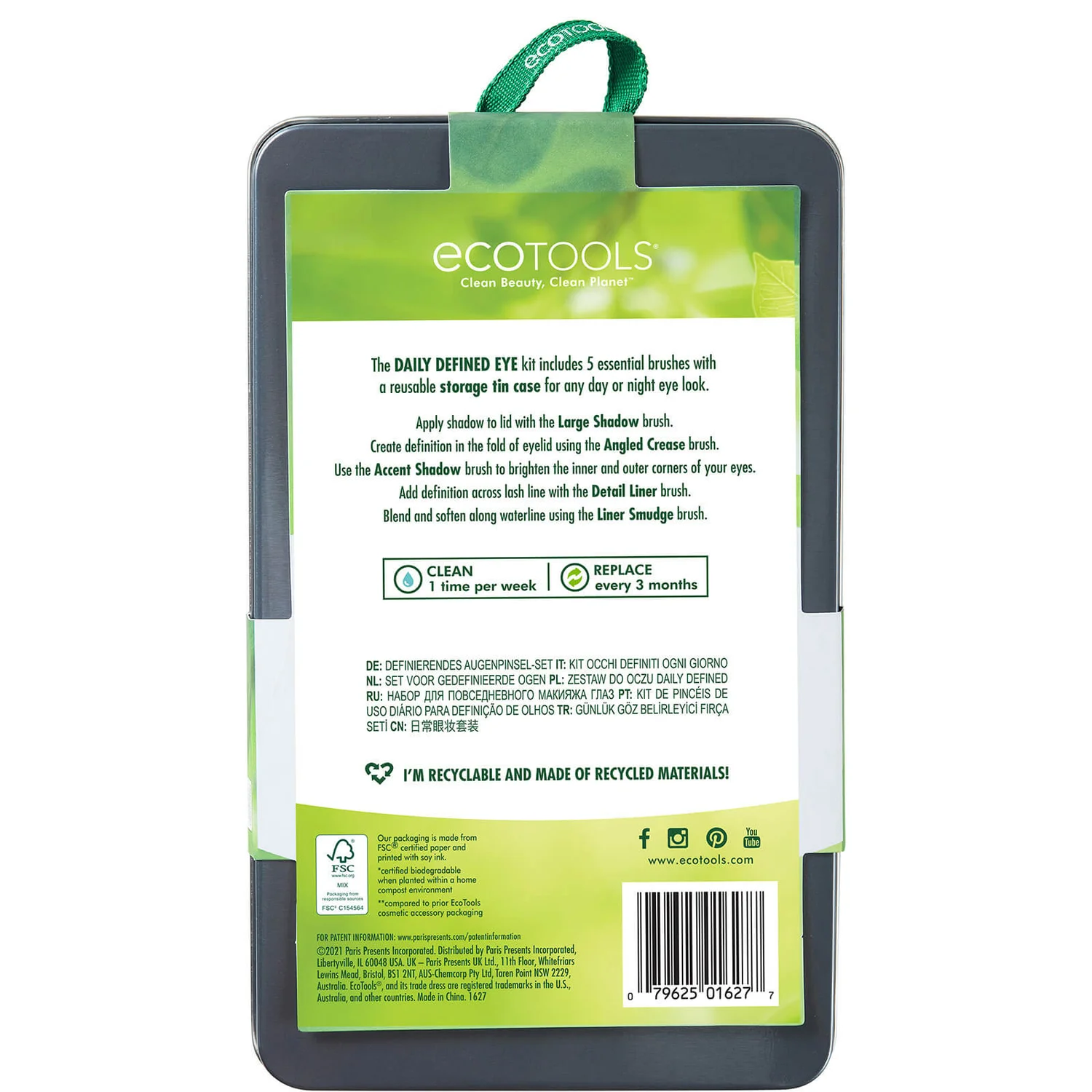 Expertly create the classic smoky eye look with ease with the EcoTools Daily Defined Eye Kit; a travel-friendly set of five eye brushes, crafted with highly sustainable bamboo handles, 100% cruelty-free synthetic taklon bristles and recycled aluminium ferrules. Conveniently presented in a compact storage stray complete with a mirror and three beauty look cards, this set is a must-have for any beauty maven.